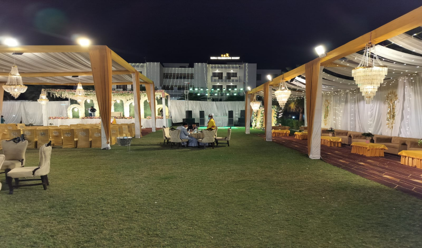 Lawn 1 is where open-sky charm meets thoughtful hospitality. Designed for celebrations that breathe, this carefully manicured outdoor space offers an elegant yet relaxed setting for weddings, sangeet nights, mehendi functions, family gatherings, and corporate socials. Surrounded by soft greenery and open horizons, it creates a naturally beautiful canvas that enhances every theme, from rustic floral to royal traditional. As the day melts into evening, gentle lighting turns the space into a glowing celebration zone, perfect for capturing memories under the sky.